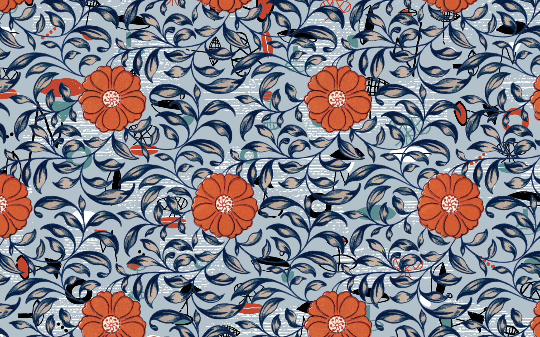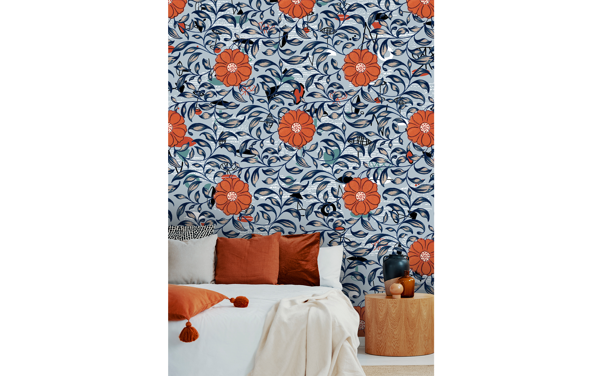 This light gray background seamless wall art features an orange flower pattern for a timeless and elegant look. The orange color of the flowers stands out against the subtle gray background, adding a striking visual effect without overpowering the room. Expertly crafted for long-lasting use, this piece is sure to add a touch of beauty to any space.