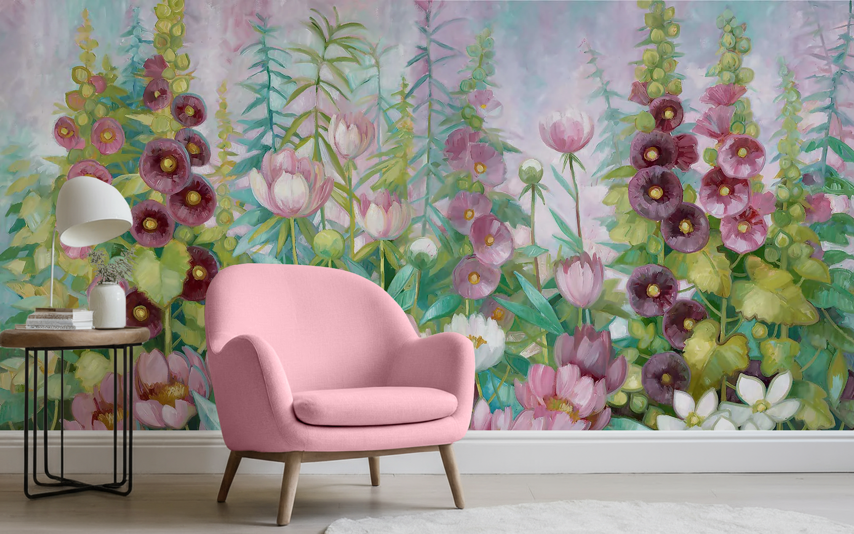 This delightful wall mural brings a burst of color and texture to any room with its vibrant pink and burgundy mini flowers. The watercolor-style design enhances home decor and brings an instant refresh. Perfect for adding a warm, cheerful touch to any space.