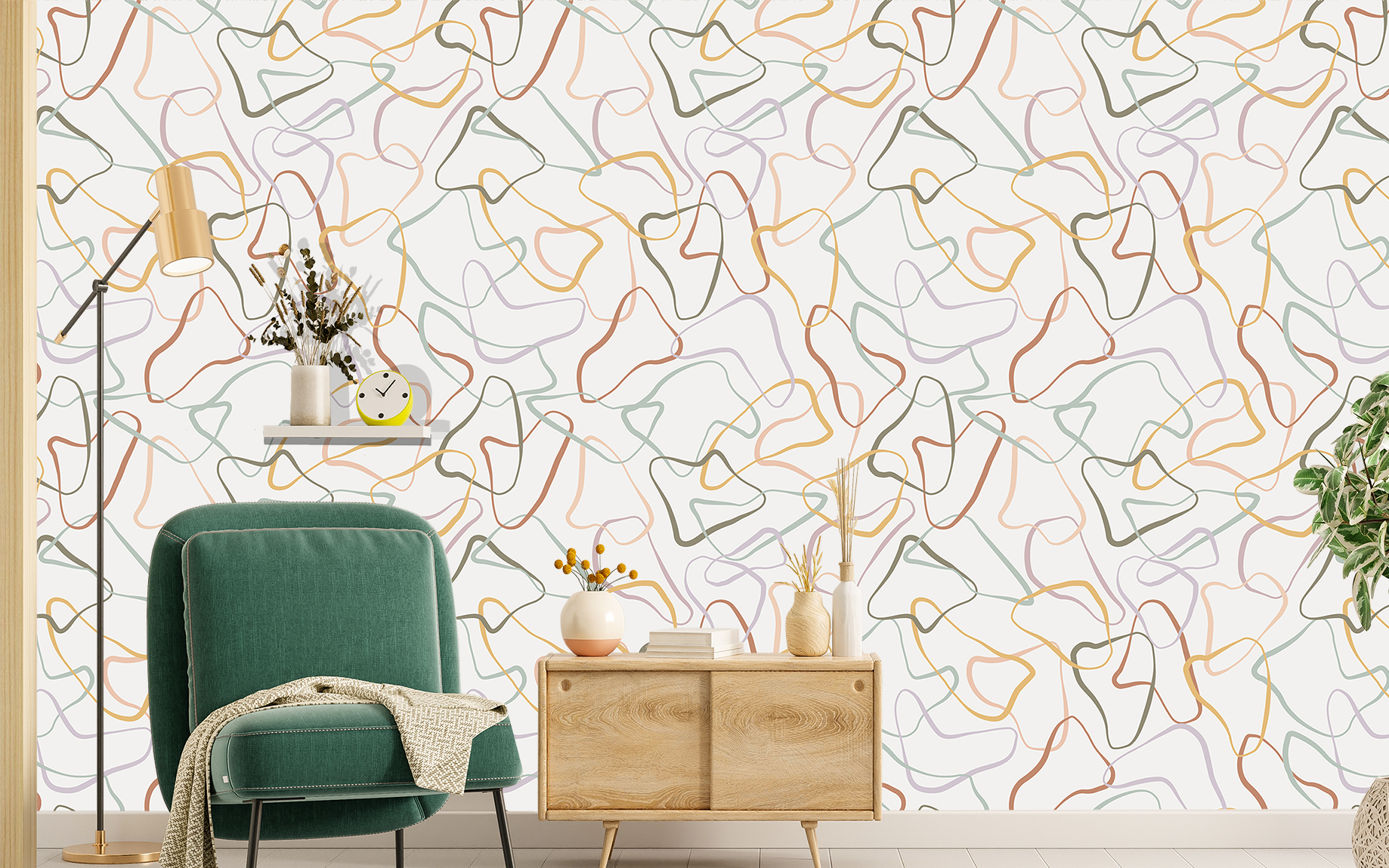A dynamic wallpaper design featuring fluid, interwoven lines in muted tones. Perfect for adding a modern, artistic touch to any space with its captivating and continuous abstract pattern.