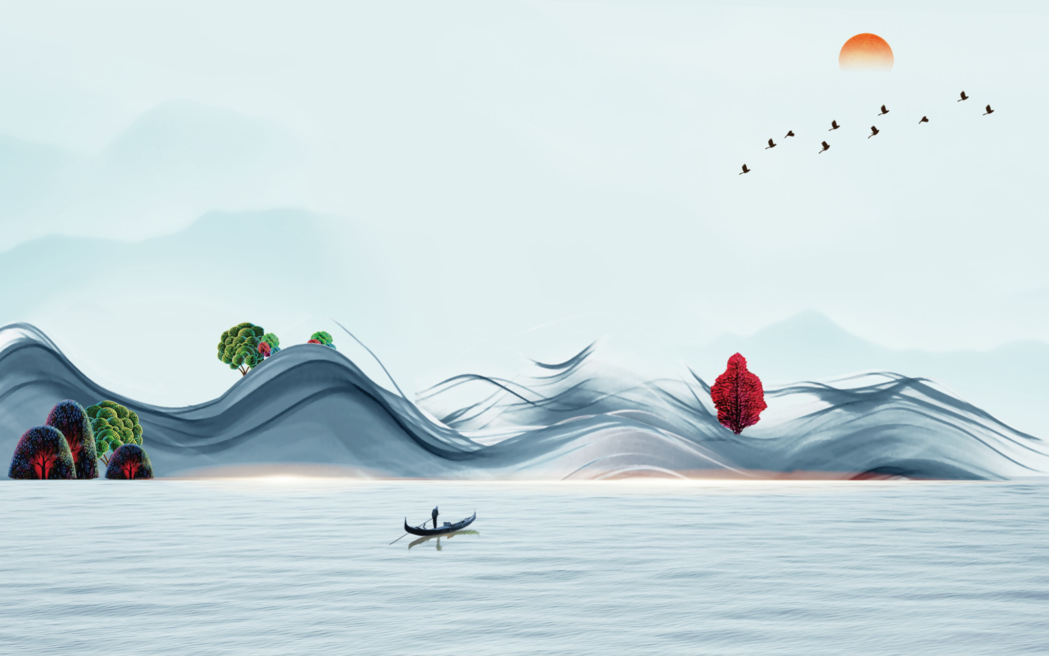 Abstract Line Boating Landscape provides a unique mural wall art experience for your home. This high-resolution design features a captivating blend of abstract lines layered with a boating landscape. The result is a stunning artwork that is sure to make a statement in any room.