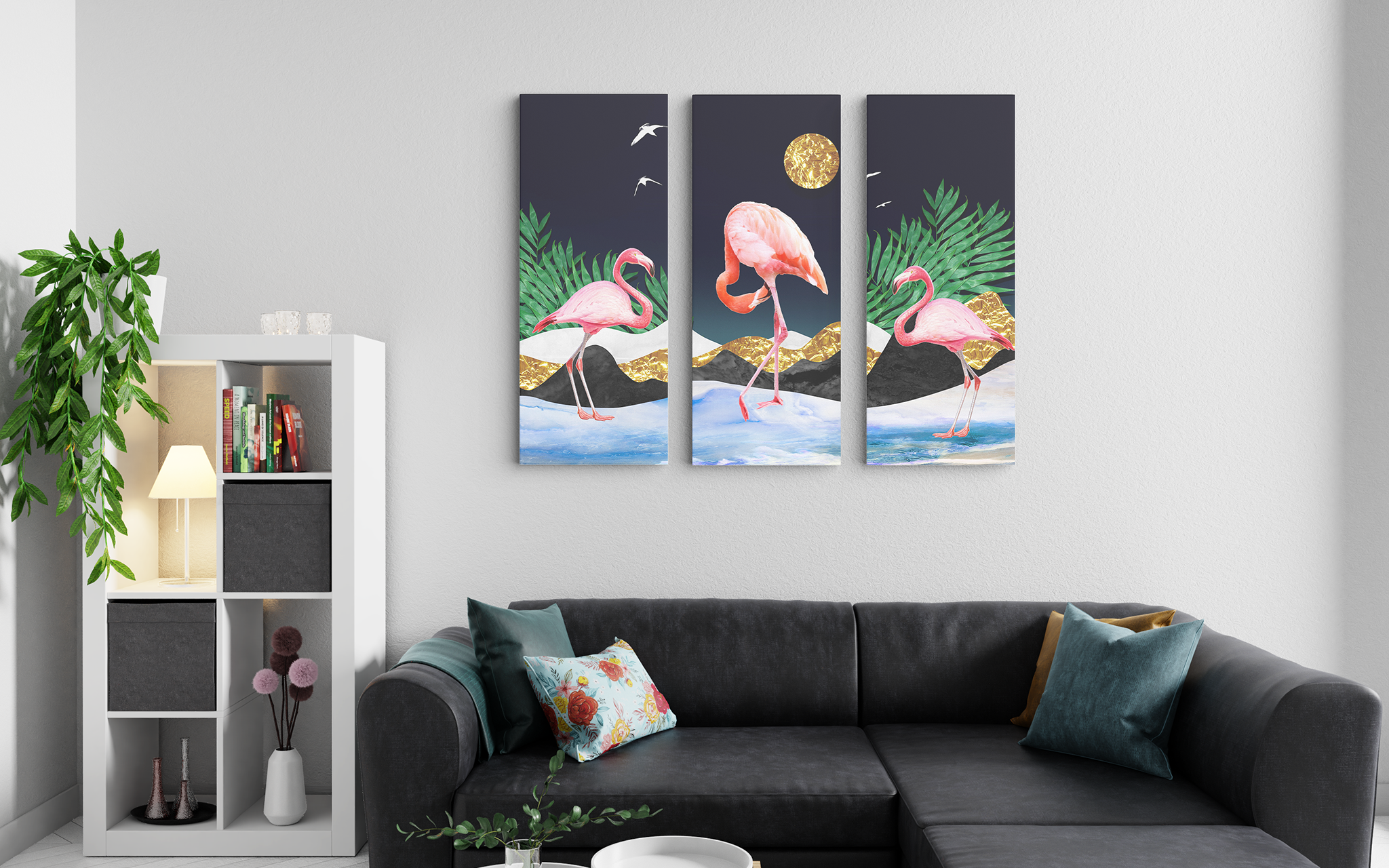 This stylish wall art canvas features the stunning Flamingo Midnight print. It's the perfect piece to bring a modern and sophisticated touch to any home decor. Crafted from high quality canvas, it's sure to last for years to come. Treat yourself today!