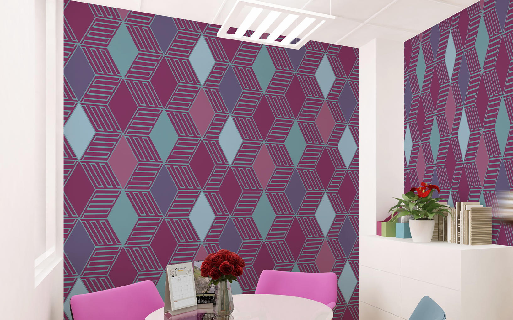 The Geo Diamond Violet BG Seamless is a vibrant and modern wall art choice for business interiors. Its intricate diamond pattern perfectly captures the attention with its detailed design, while the violet hues add a sophisticated touch to any wall.