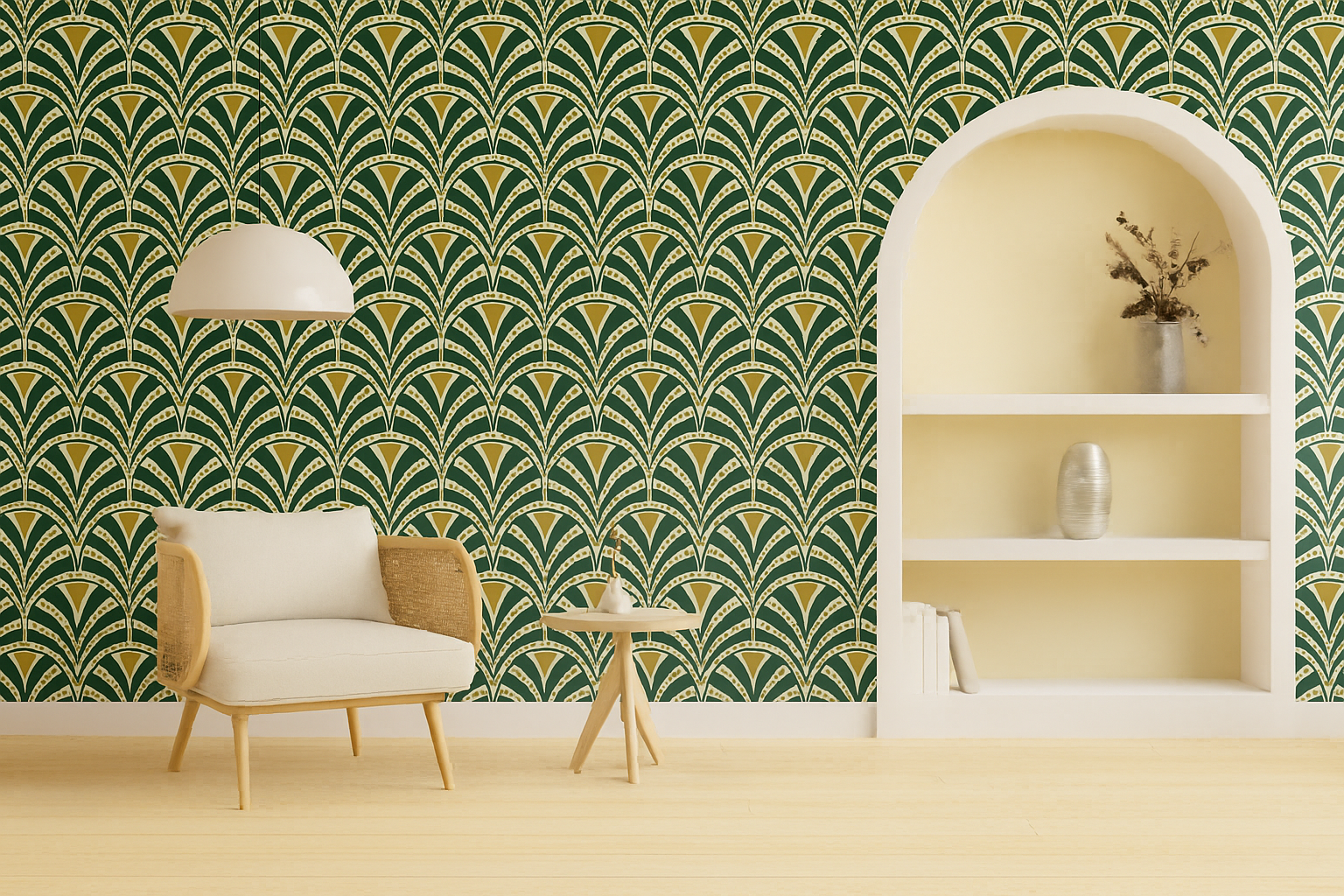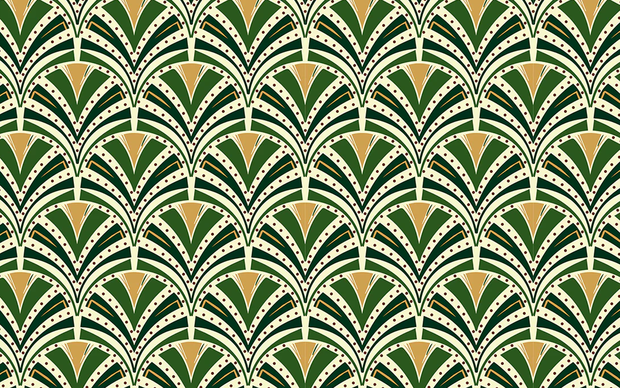 A refined fusion of Art Nouveau elegance and natural grace, where flowing golden lines dance amid verdant...