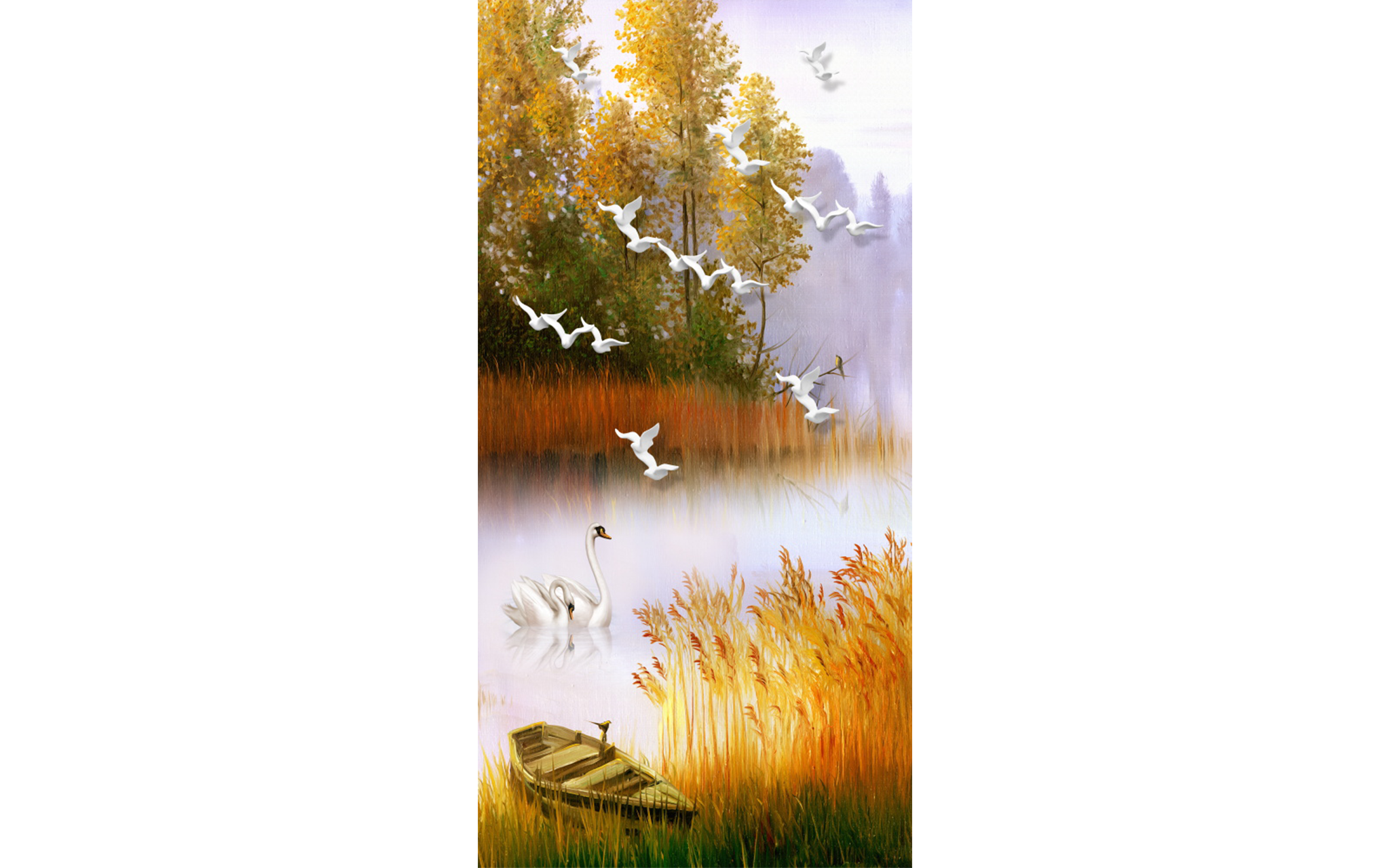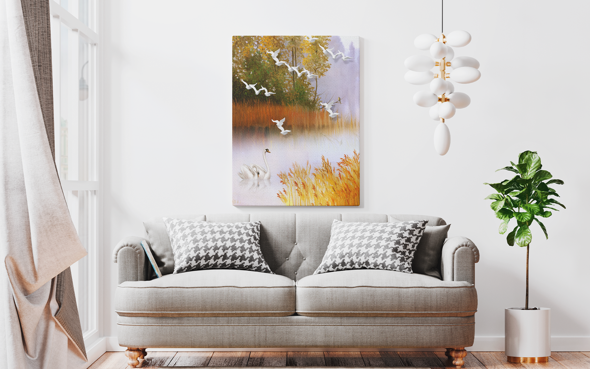 This elegant canvas wall art adds a touch of class to any decor. Featuring stunning golden wheat with a white swan and white birds silhouette against a beautiful sunset background, this piece is sure to make a statement in any room. Perfect for modern interiors, this high-quality canvas print is fade-resistant for lasting colour.