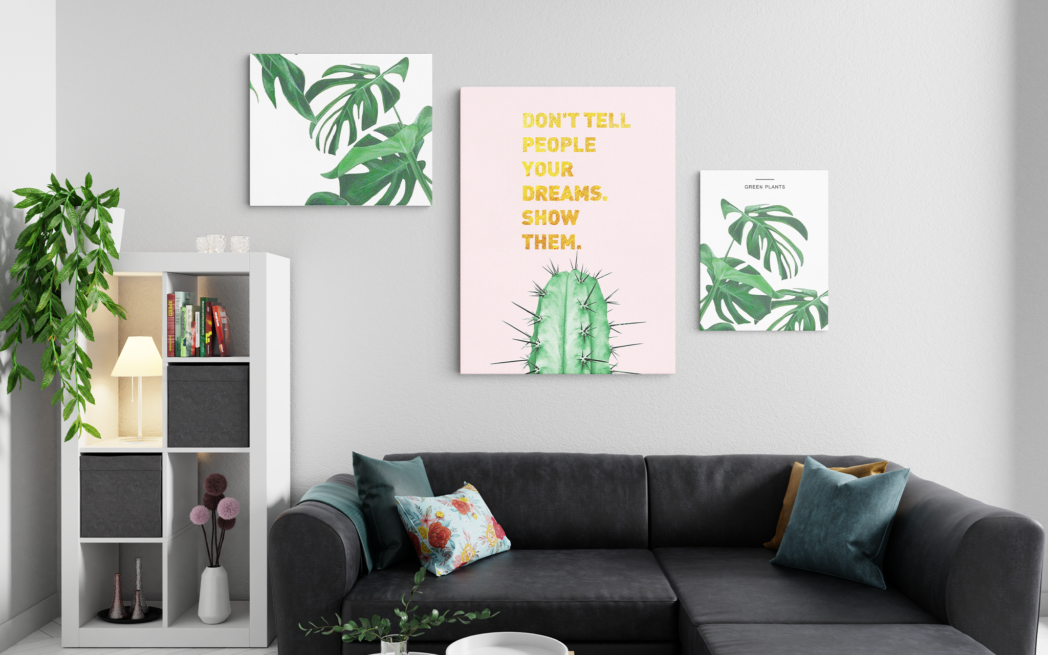 This Green Plants canvas wall art features an eye-catching array of lush, vibrant plants. Printed on quality canvas, it adds a refreshing and vibrant atmosphere to any room. A perfect accent for any home décor.
