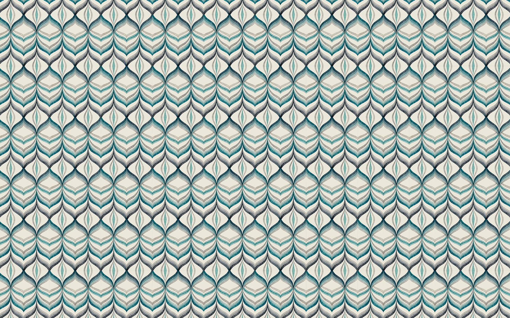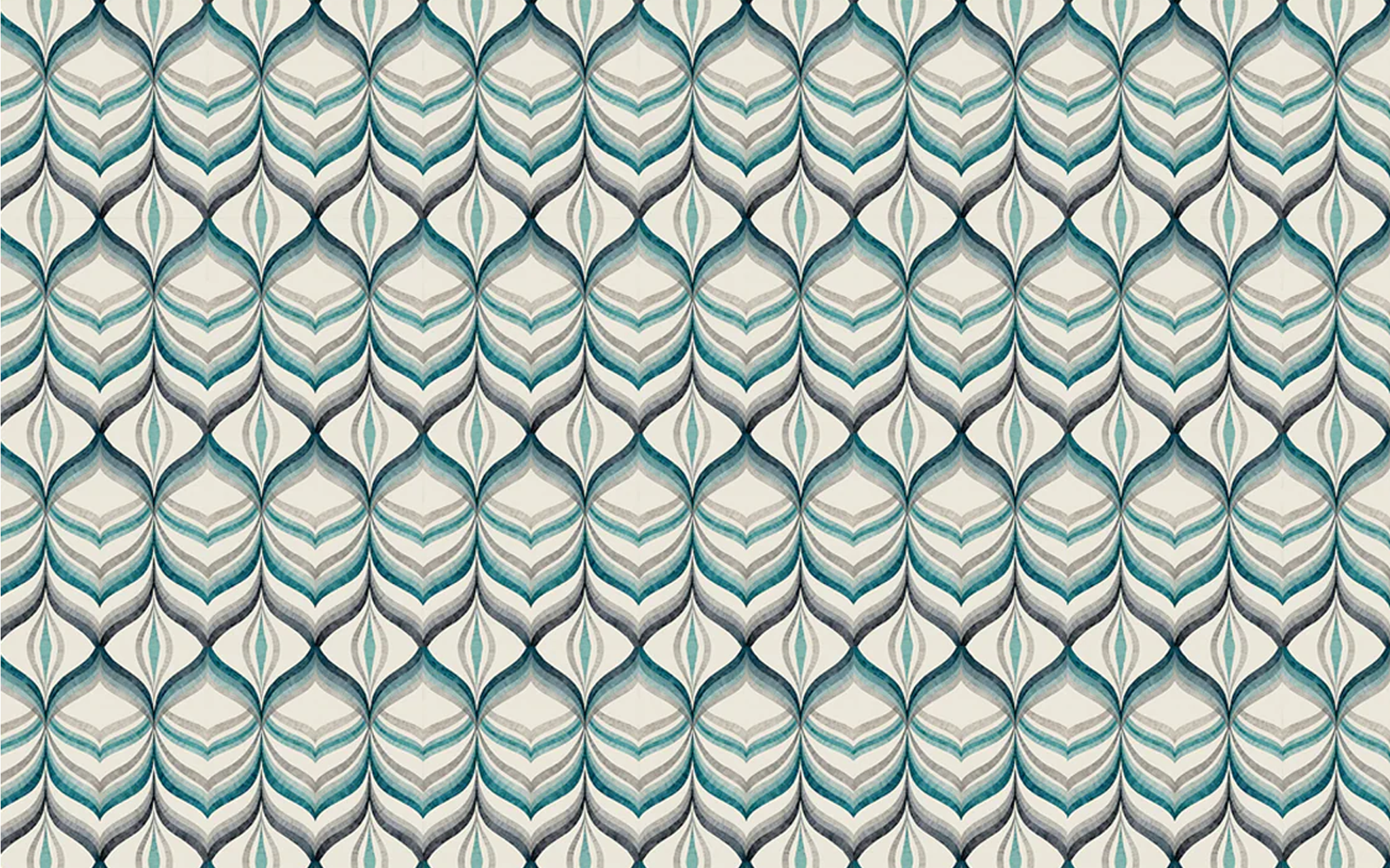 A rhythmic fusion of teal and gold tones forming elegant, upward curves that echo the grandeur and poise of towering cityscapes.