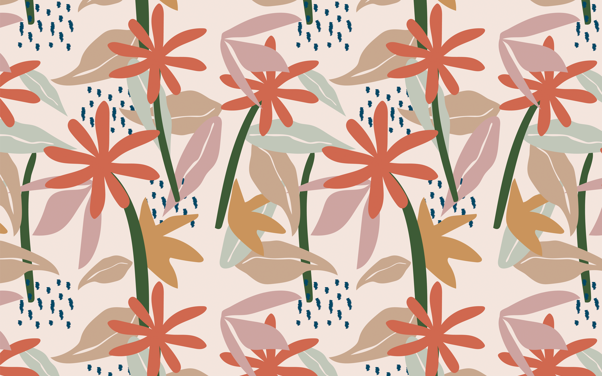 This rust-colored wall art features a beautiful floral pattern set against an off-white background. Seamless for a continuous look, it will add an air of sophistication to any room.