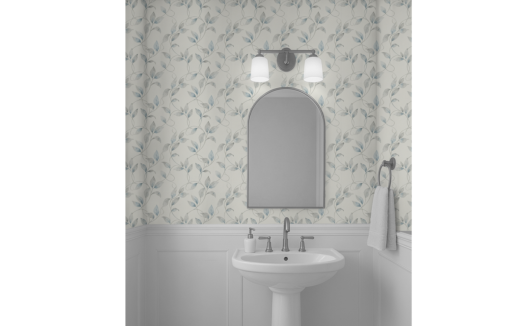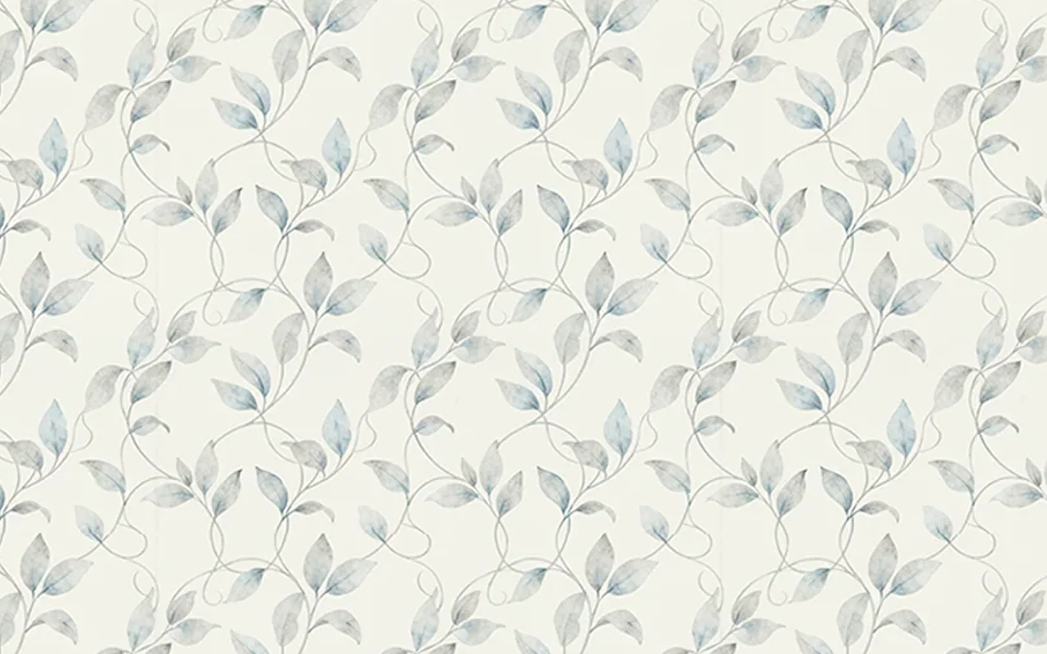Soft watercolor leaves in misty blue and gray dance across a pale background, creating a calm and graceful pattern that brings a touch of nature’s elegance to any space.