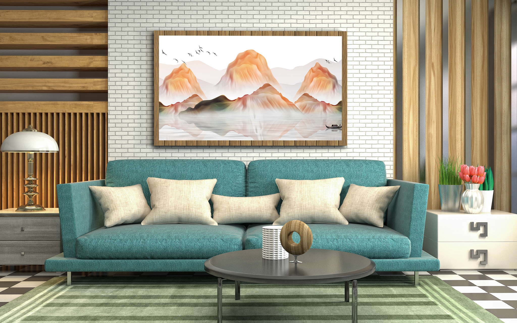 This canvas wall art, The Orange Mountains, is a stunning piece of home décor. Its vibrant colors create a captivating atmosphere and captivate viewers with its serene beauty. Perfect for any home or office decoration, it is sure to make a statement.