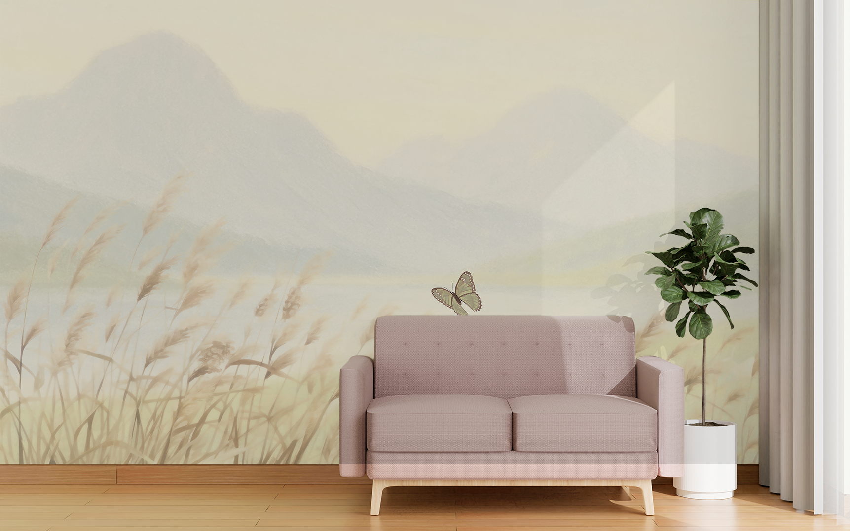 A light breeze carries both the grasses and the butterfly in a shared rhythm of calm