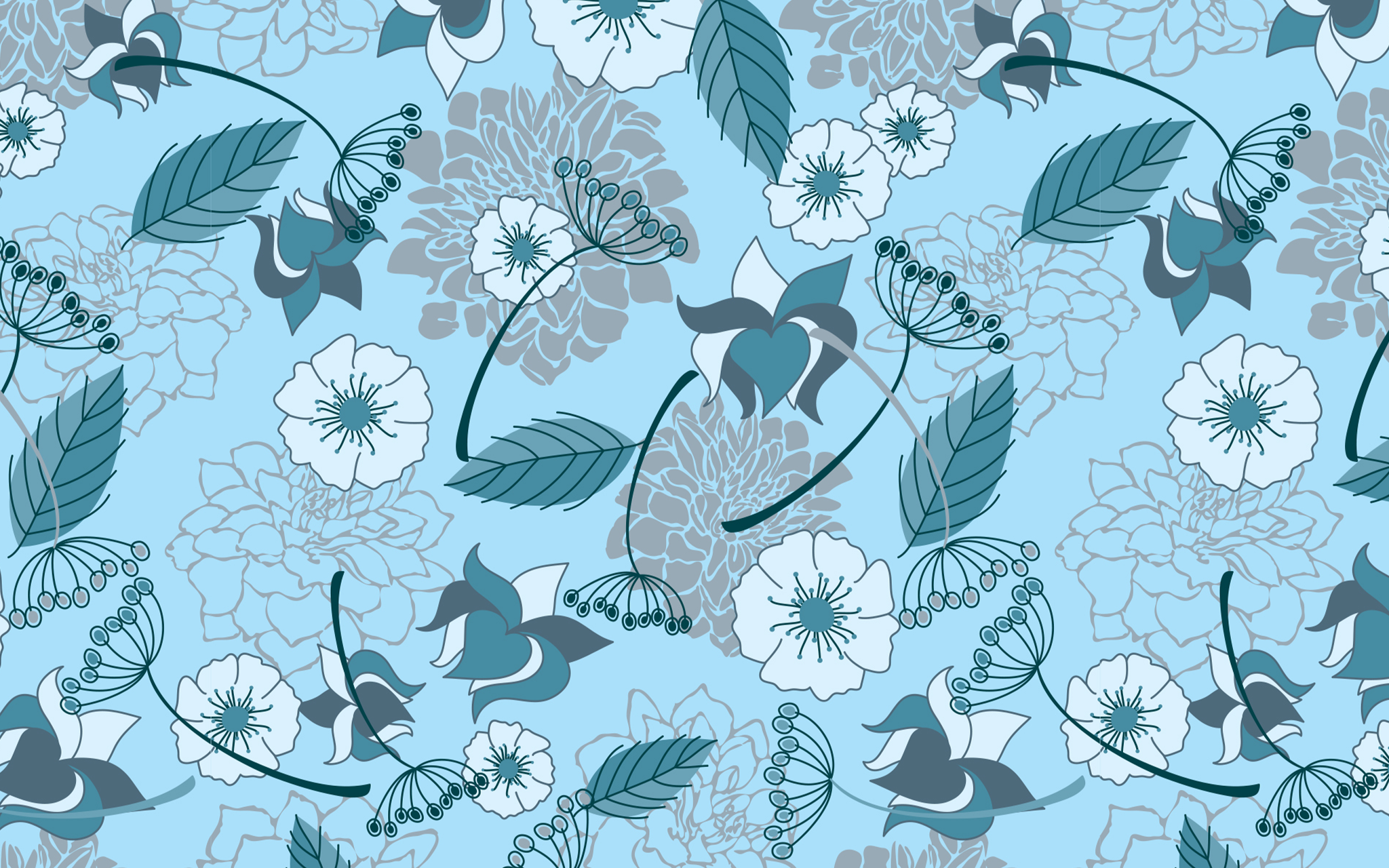 Various Flowers And Leaves Bluish Hue on Roman Shades