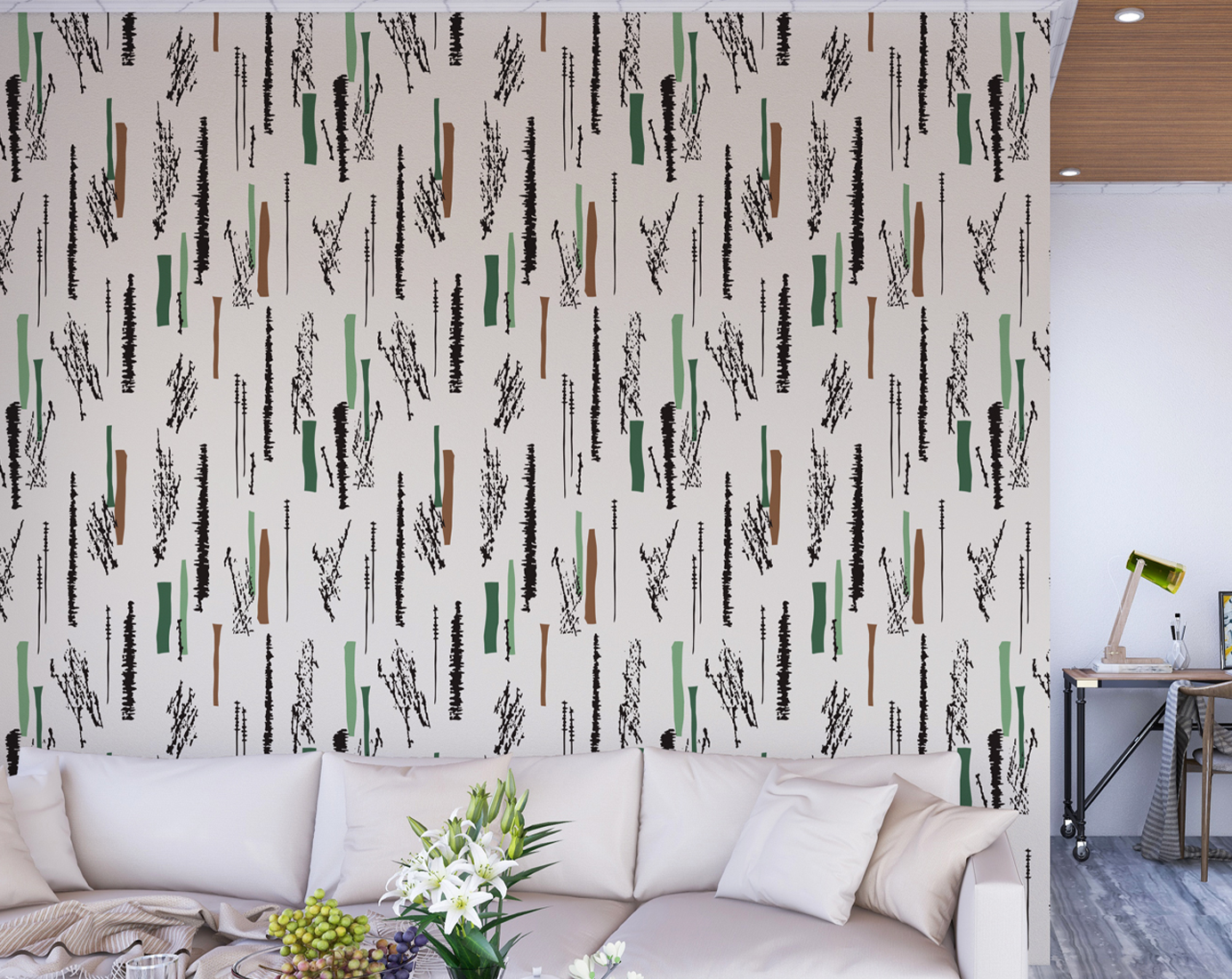 This Vertical Green Lines Cream BG Seamless wall art is perfect for creating a stylish atmosphere. With its seamless design and vertical green lines, you'll get a modern look that will last. Add a touch of sophistication to your home with this beautiful wall art.