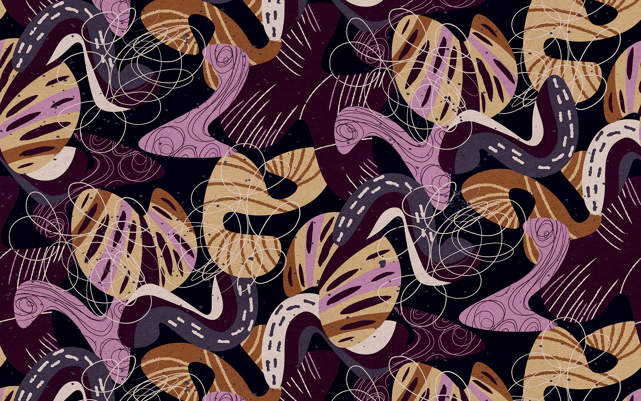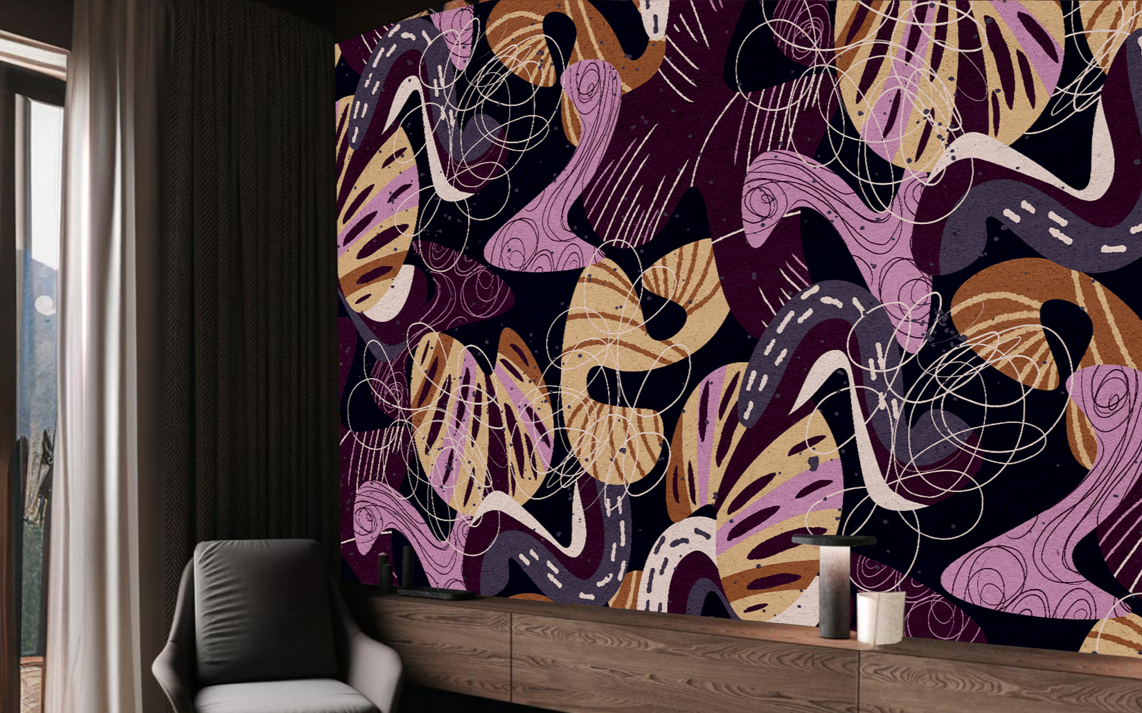 An entrancing fusion of deep plum, beige, and mauve tones dance in fluid, swirling motions. Velvet Whirl captures the rhythm of abstract movement, evoking a sense of depth and modern sophistication through its layered curves and textured interplay.
