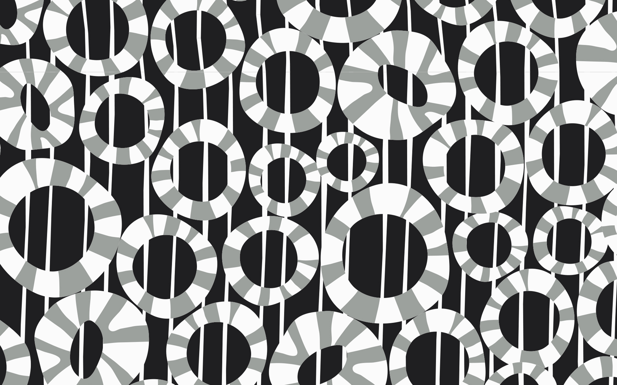 Our White Ring Patterns Black BG Seamless wall art features beautiful white rings in a mesmerizing pattern on a deep black background. The modern design and vibrant colors will enhnace any room in your home.